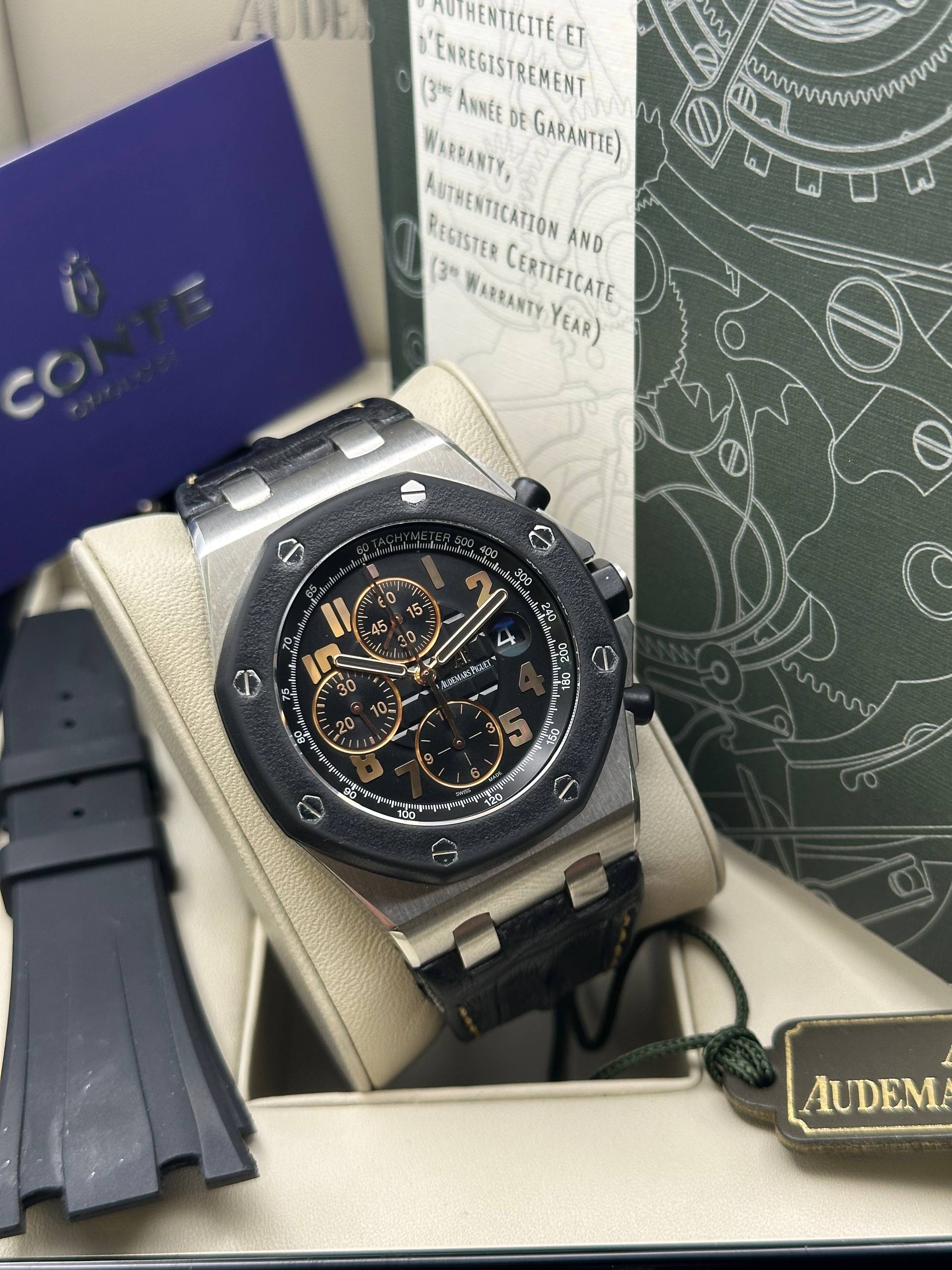 BASATO SU 1067 RECENSIONI VERIFICATE Lanciato nel 1993, il Royal Oak Offshore di Audemars Piguet è la versione più sportiva e robusta del celebre Royal Oak. Con cassa sovradimensionata, protezioni per i pulsanti e materiali high-tech, è pensato per chi desidera un segnatempo imponente e di carattere. Disponibile in varianti cronografo e con complicazioni, è amato per il suo stile audace e la sua ingegneria impeccabile.