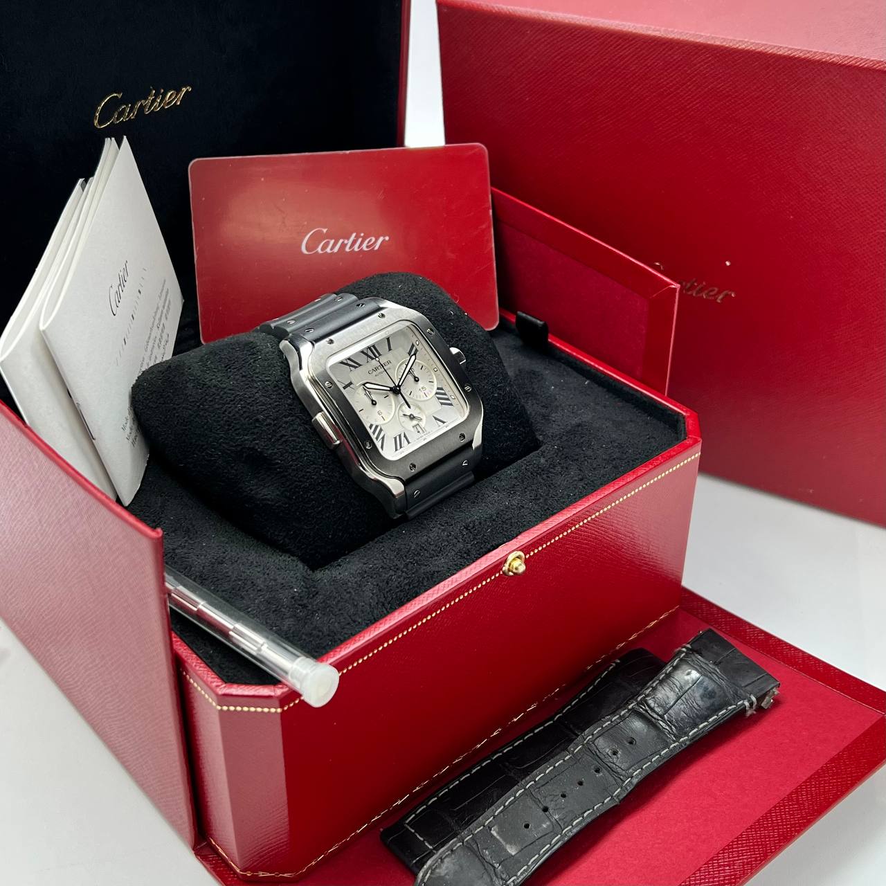 Cartier Santos Chronograph Full Set Double Strap